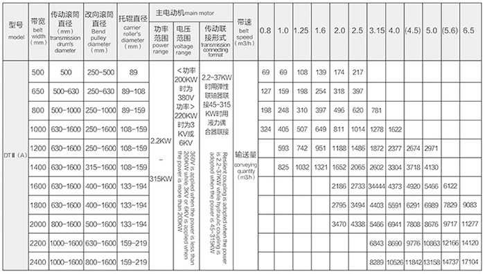 本產(chǎn)品是DTII型系列產(chǎn)品的改進(jìn)產(chǎn)品,可用于煤炭,礦山,港口,電站,建材,冶金等行業(yè),可輸送松散密度為0.5-2.5T/M的各種散狀物或物品,工作環(huán)境溫度-25℃-40℃,適用于傾斜以及水平輸送,也可采用帶凹、凸弧段與直線段組合輸送形式。