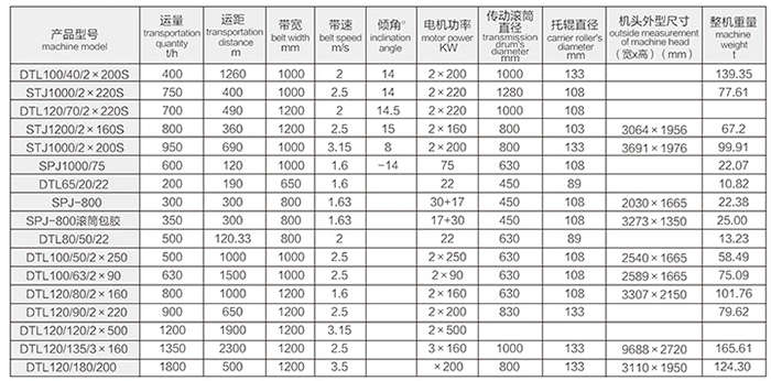 礦用固定帶式輸送機(jī)技術(shù)參數(shù)